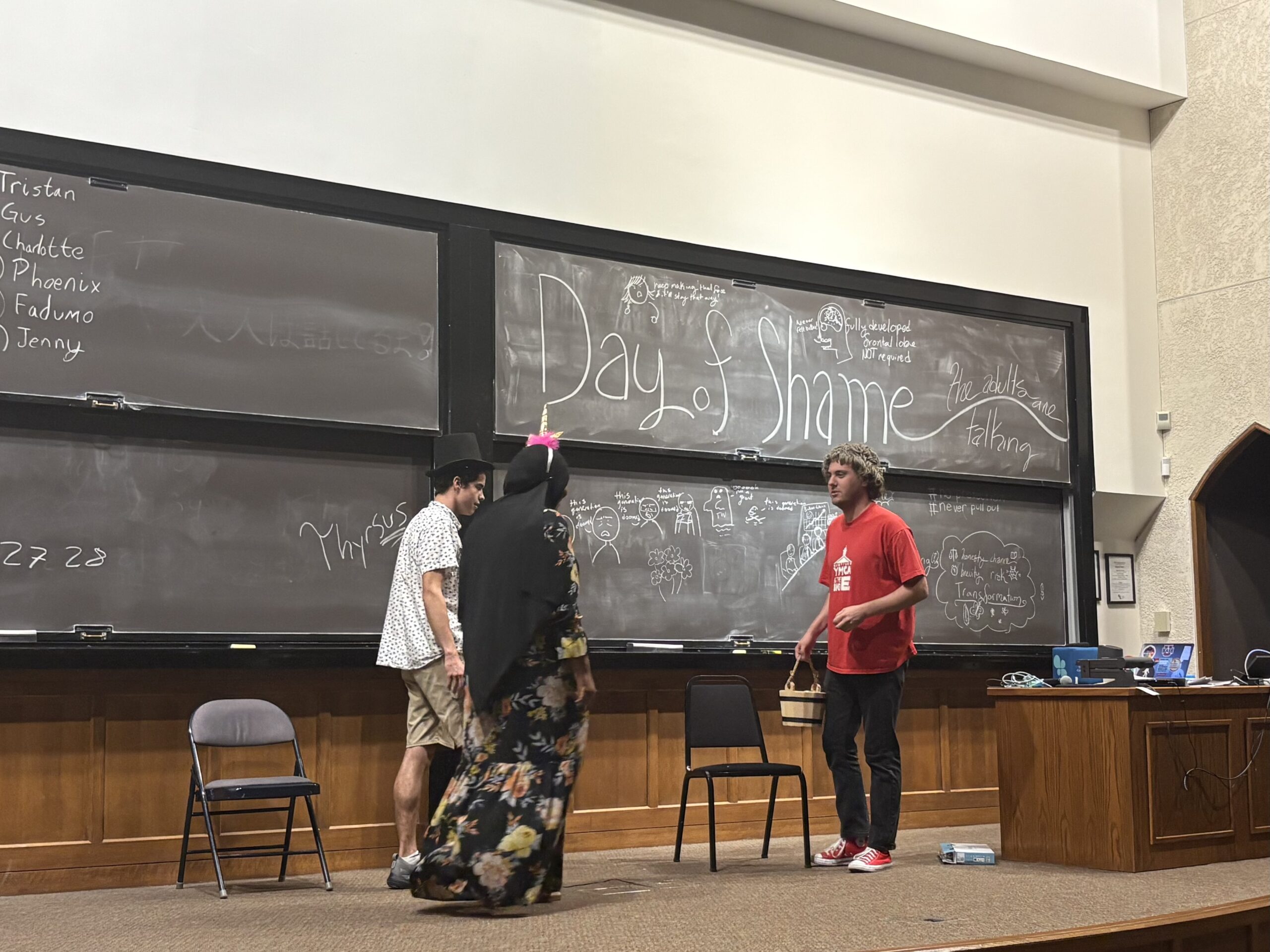 When Thyrsus president and senior Alanis Preciado Higgins and Co-Day of Shame Director and senior Tristan Dumas sat down to pick a theme for this semester’s Day of Shame, they decided to leave it up to chance. They shuffled songs on Spotify and landed on a theme once they found a song that stuck with them. Thyrsus shared their Day of Shame, themed “The Adults are Talking,” on Oct. 11, and the show carried the same spirit of spontaneity that Preciado Higgins and Dumas captured weeks earlier.