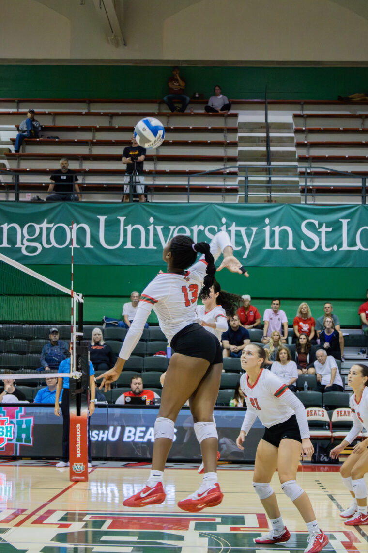The Bears answered Oshkosh point-for-point in the third set, coming back to tie the game at 8, 9, and 11 points. A series of small runs by both teams kept the game close until the very end, where Oshkosh edged out WashU to win 25-20.